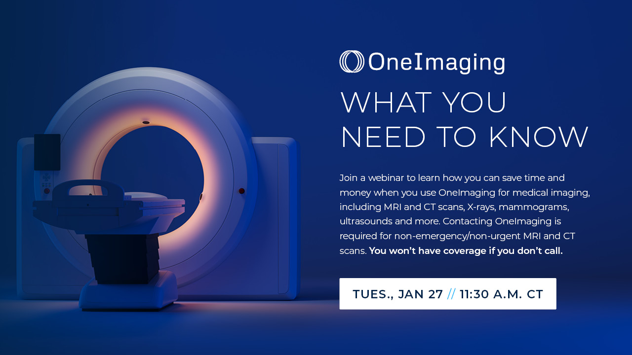 Learn how you can save time and money when you use OneImaging. Join a webinar Tuesday, January 27 at 11:30 a.m. CT. Register Here